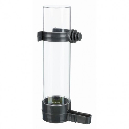 Műanyag víz- és takarmány-adagoló madaraknak, a ketrec külső részére erősíthető.